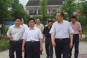 時(shí)任浙江省常委、宣傳部長(zhǎng)朱國(guó)賢考察文化禮堂建設(shè)